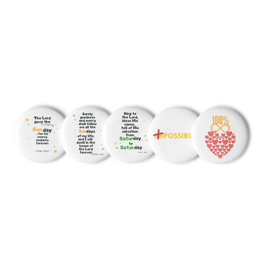 5 Bible Inspired Set of pin buttons - 5 Days of the Week
