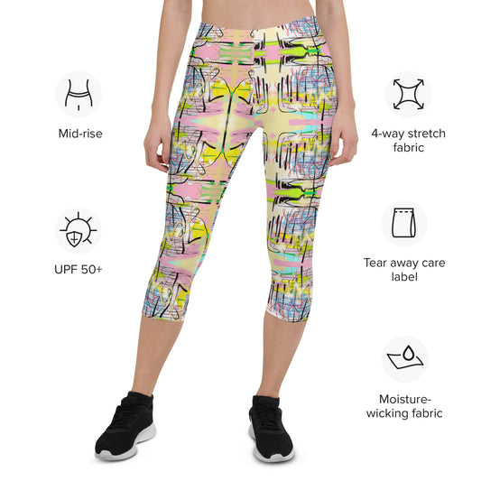 Graffiti Jesus - Designer Capri Leggings (Black stitches)
