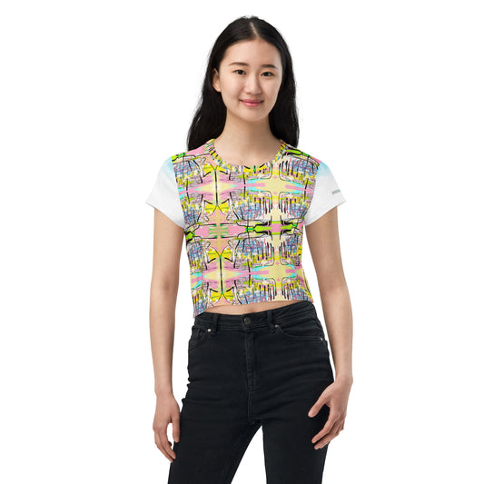 Graffiti Designer JESUS (Pink/Blue Gradient) Crop Tee Women's T-Shirt