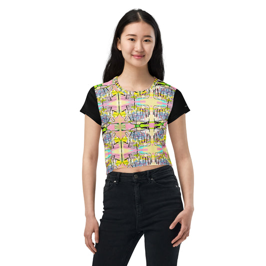 Jesus Graffiti Designer Women's All-Over Print Crop T-Shirt (Black)